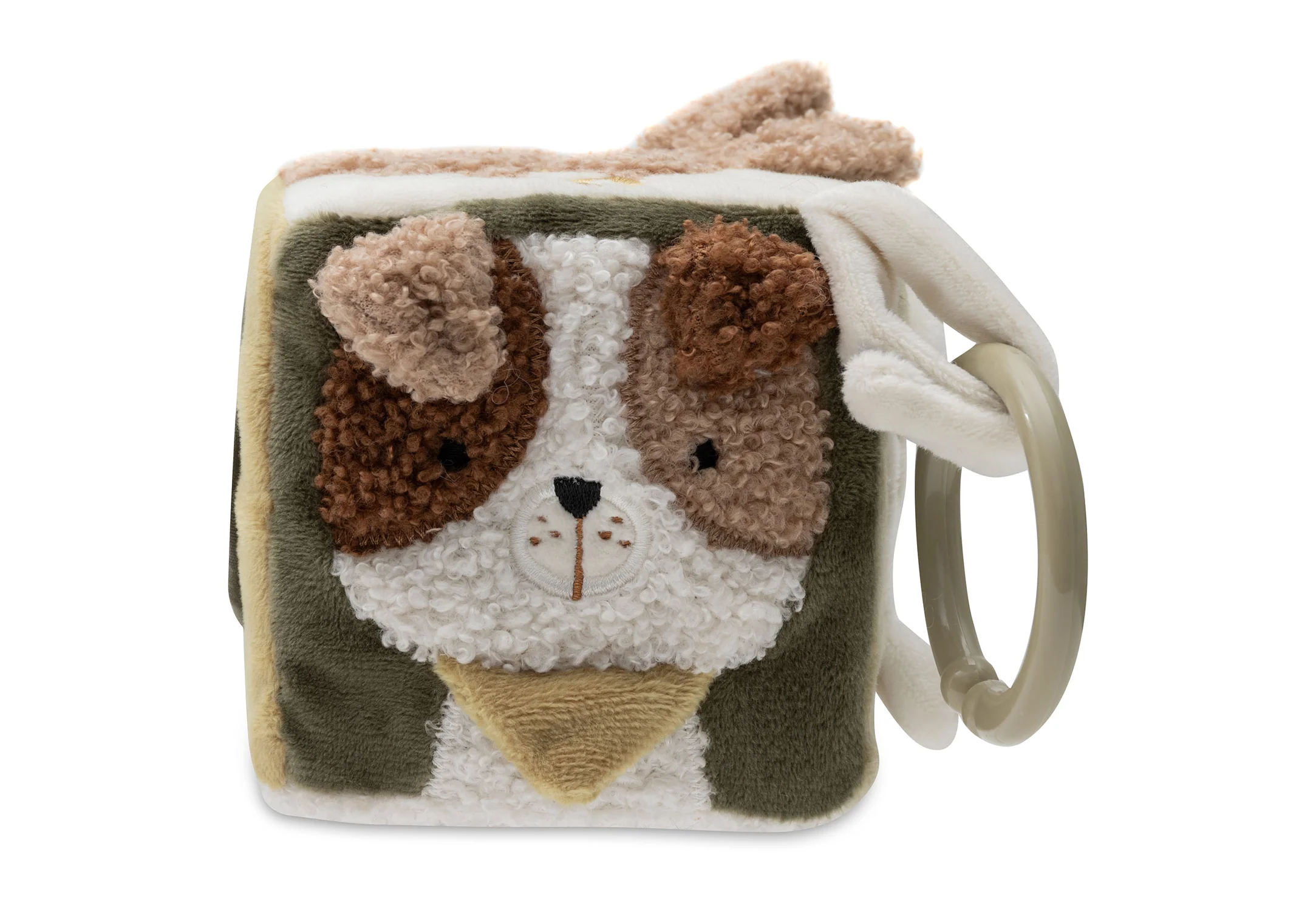 Deze zachte activiteitenkubus uit de Tiny Park collectie is een betoverend speeltje voor je kleintje. Met schattige dieren zoals een kat, hond en uil en interactieve elementen zoals knisperende oortjes en een spiegel, stimuleert het de zintuigen en motorische ontwikkeling van je baby. Een vrolijke en leerzame kubus, perfect voor urenlang speelplezier in de box of onderweg!​